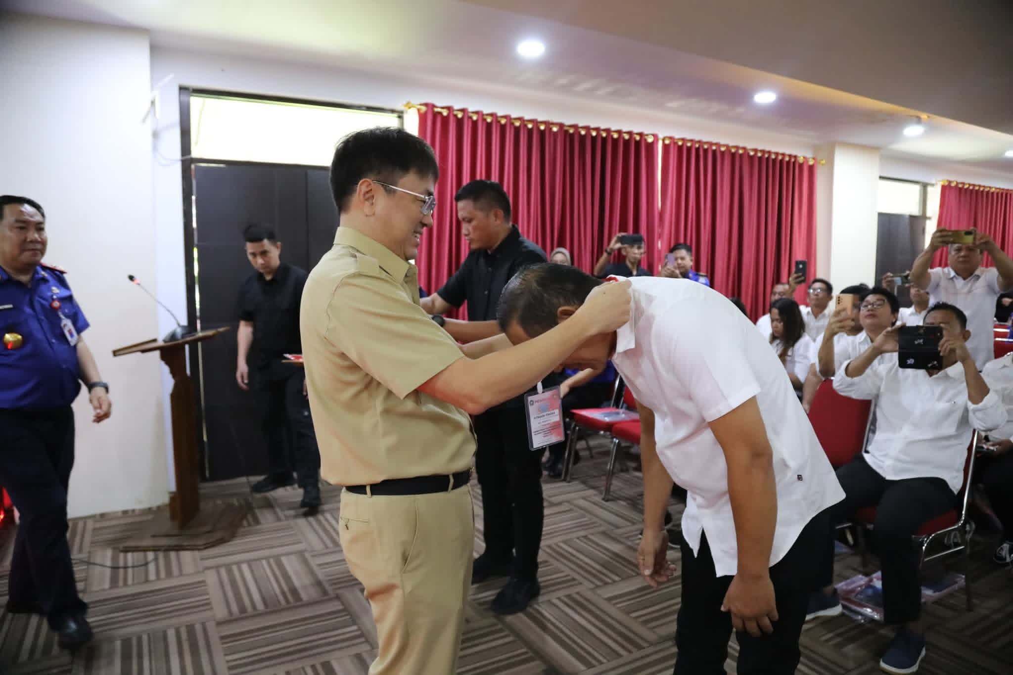 Acara pengukuhan dihadiri Sekda dr. Steaven Dandel M.Ph., Asisten I Julises Oechlers S.H., Kepala Damkar dan Penyelamatan Kota Manado Jimmy Charles Rotinsulu S.E.,M.Si. pejabat eselon Damkar dan peserta calon Redkar 2025.
