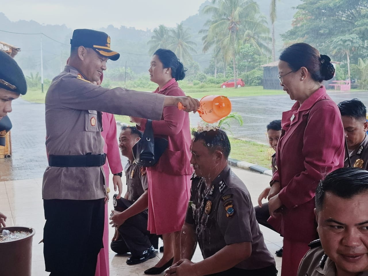 Upacara ini berakhir dengan Suasana khidmat dan Menyelimuti rasa Kegembiraan, dilanjutkan dengan Tradisi Siraman Bunga dan dirangkaikan dengan Acara syukuran kenaikan pangkat.(faj)