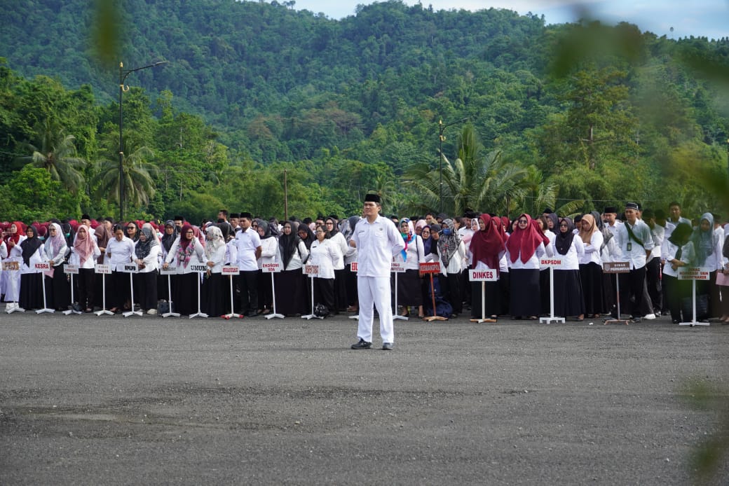 Upacara dipimpin Wakil Bupati Deddy Abdul Hamid. Wabup Deddy membacakan sambutan resmi Menteri Kesehatan RI Budi Gunadi Sadikin, Melalui peringatan HKN yang bertema “Generasi Sehat, Masa Depan Sehat”, Menkes Budi mengajak seluruh komponen bangsa untuk terus memperkuat kolaborasi dalam membangun sistem kesehatan yang tangguh dan berkeadilan.