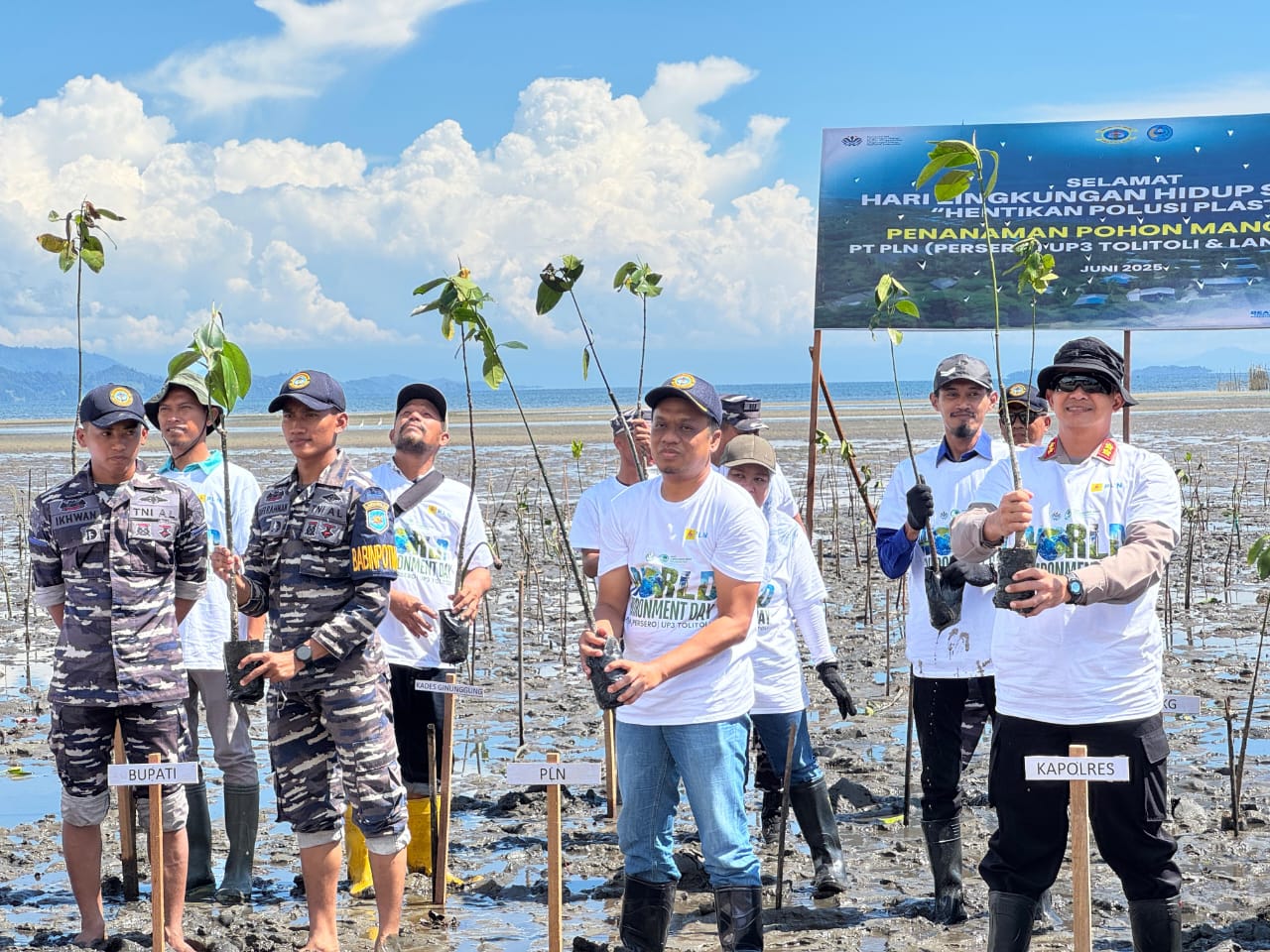 Harimanado.com,TOLI TOLI– Aksi penghijauan untuk memperingati Hari Lingkungan Hidup Sedunia, ikut dilakukan PT PLN (Persero) Unit Pelaksana Pelayanan Pelanggan (UP3) Tolitoli. PLN tidak sendirian, ikut juga Pemerintah Daerah Kabupaten Tolitoli, Lanal Tolitoli, dan sejumlah instansi terkait lakukan penanaman 5.000 pohon mangrove di wilayah pesisir Kabupaten Tolitoli, Sabtu (28/06).