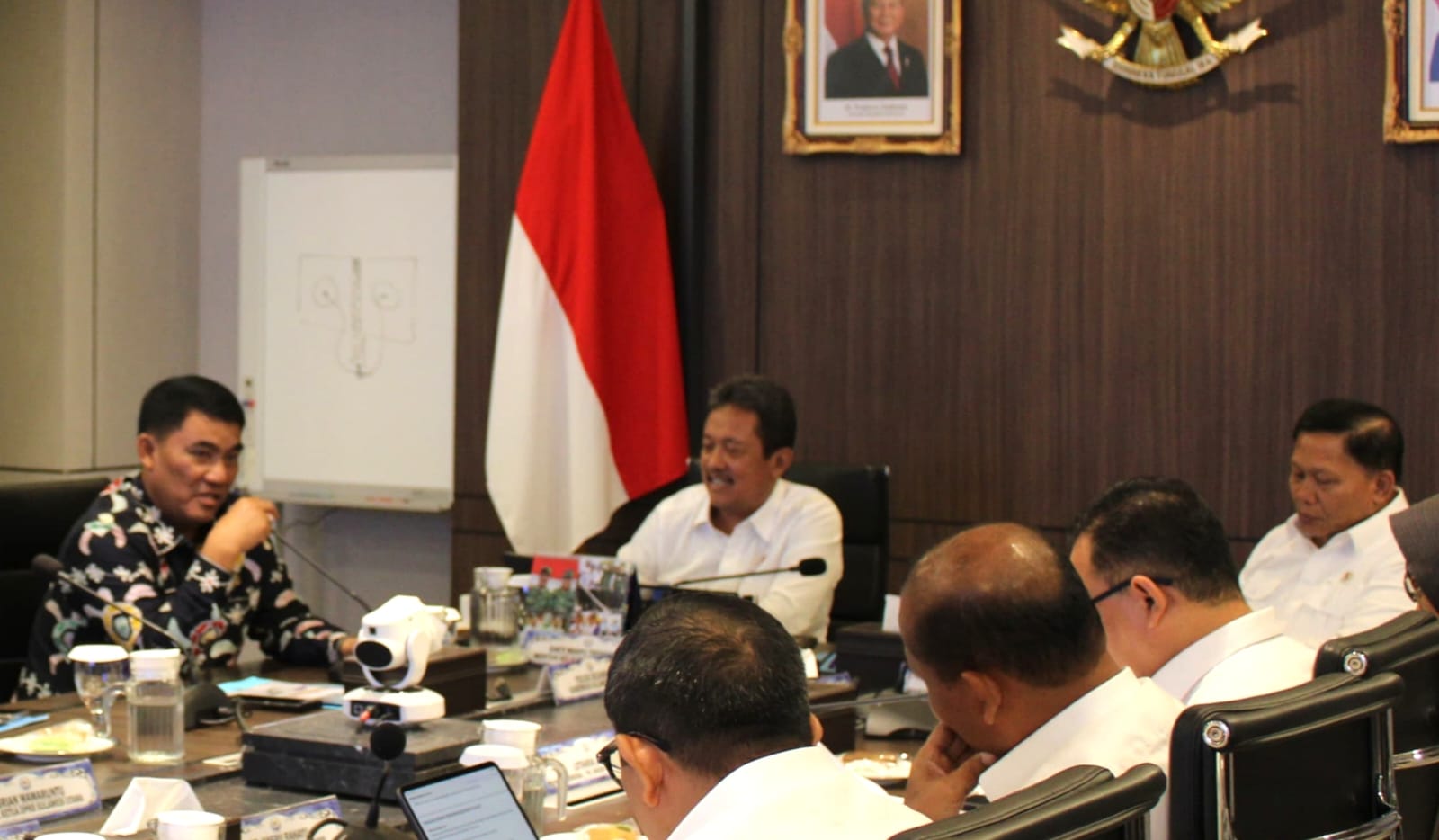 Kedatangan Gubernur Selvanus pun diterima langsung Menteri KP Sakti Wahyu Trenggono bersama jajaran di ruang kerjanya.