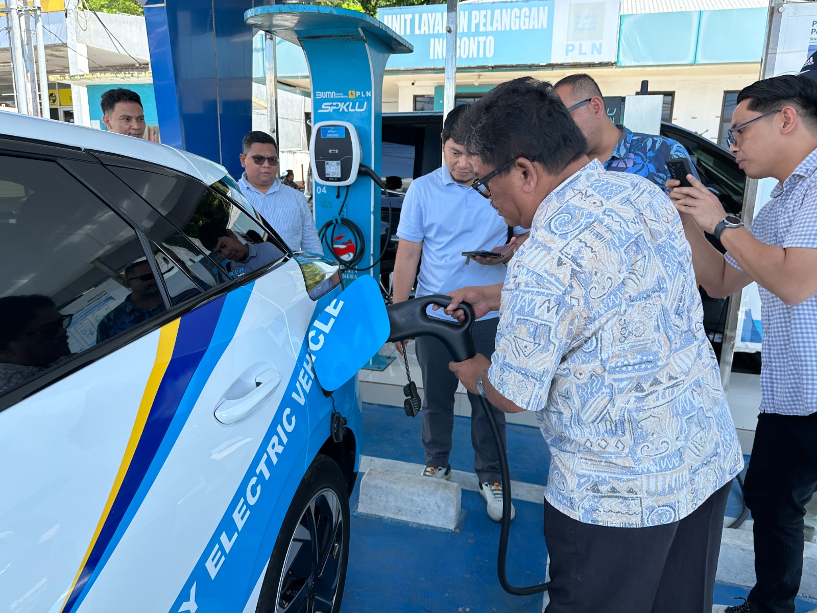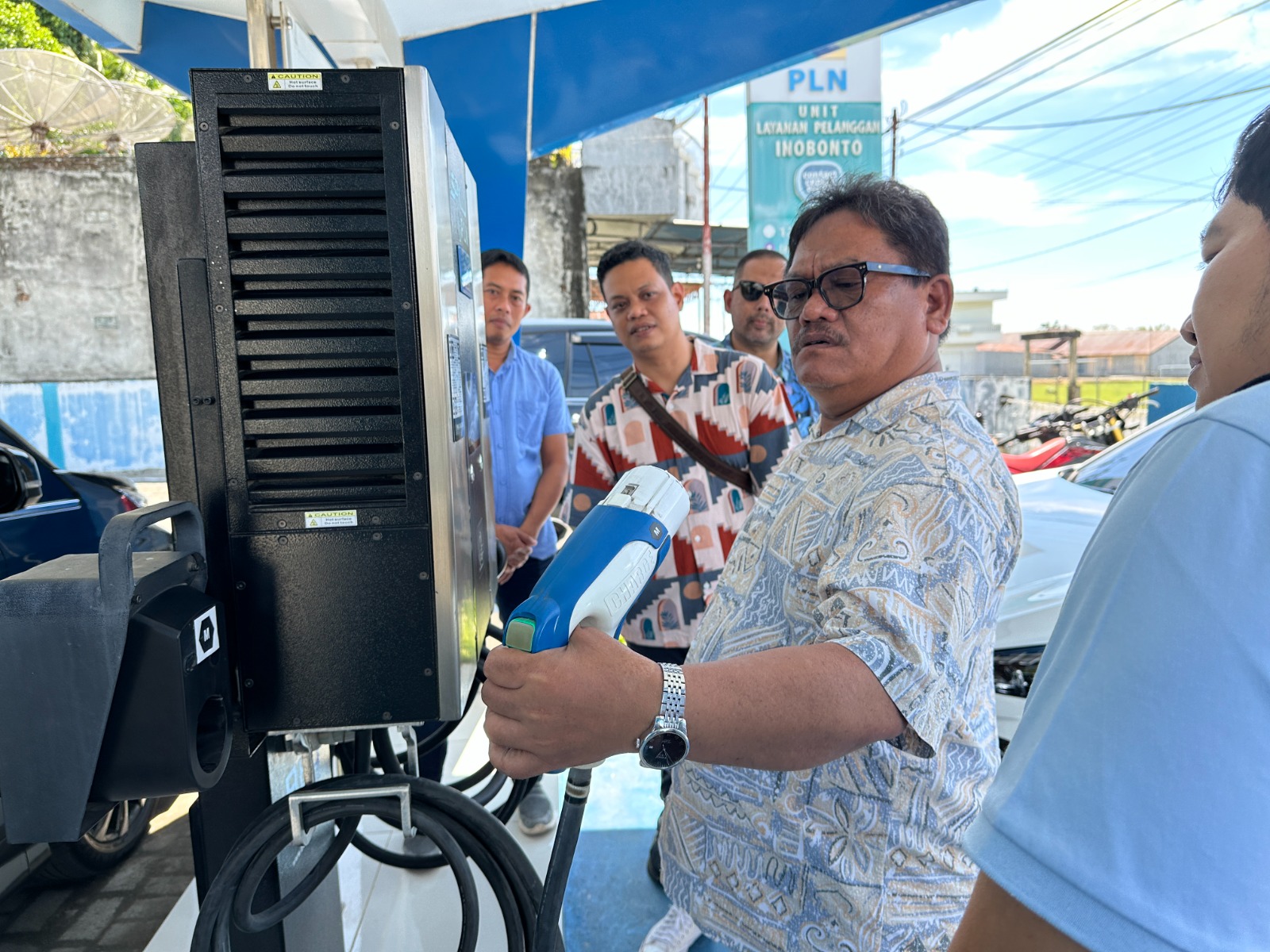 Harimanado.com,BOLMONG- General Manager PLN Unit Induk Distribusi Sulawesi Utara, Tengah, dan Gorontalo (UID Suluttenggo), Usman Bangun, melakukan kunjungan kerja ke PLN Unit Layanan Pelanggan Inobonto guna memastikan kesiapan pelayanan Stasiun Pengisian Kendaraan Listrik Umum (SPKLU), Sabtu (14/06).