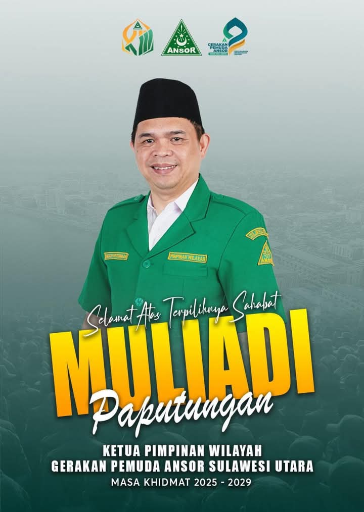 MULYADI Paputungan sah terpilih memimpin Gerakan Pemuda (GP) Ansor Sulawesi Utara periode 2025-2029.