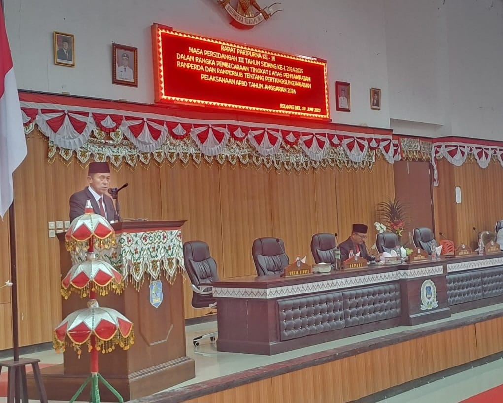A-TIMES, BOLSEL – Dewan Perwakilan Rakyat Daerah (DPRD) Kabupaten Bolaang Mongondow Selatan (Bolsel), telah menggelar rapat Paripurna tahap I, terkait penyampaian Rancangan Peraturan Daerah (Ranperda) dan rancangan Peraturan Bupati (Ranperbup), tentang pertanggungjawaban pelaksanaan APBD tahun anggaran 2024, Rabu (18/06/2025) di ruang Rapat Paripurna DPRD Bolsel.