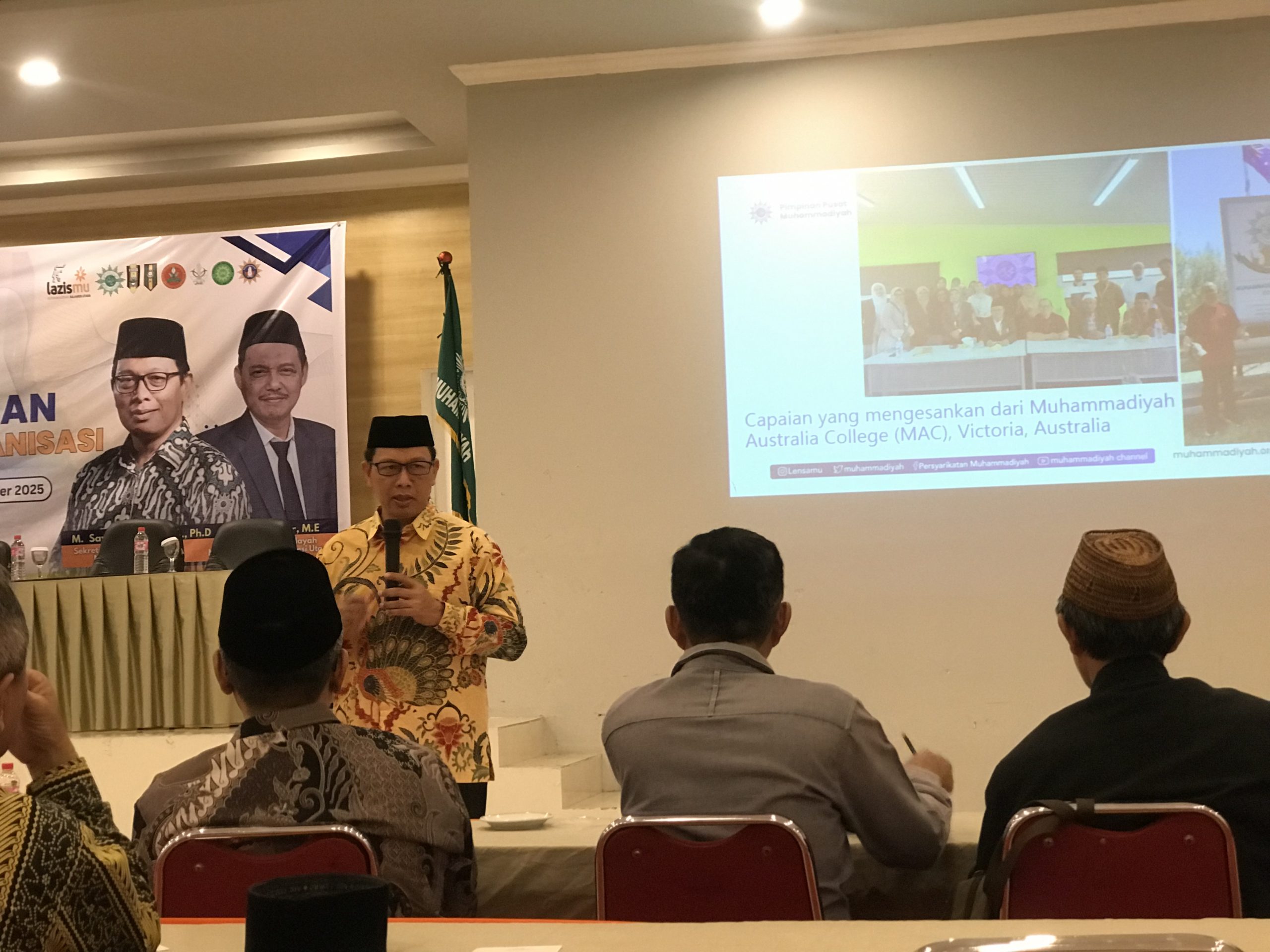 Sebelum acara pelantikan, diawali materi Dr Sayuti tentang organisasi Muhammadiyah. Selama lima jam Sekretaris PP Muhammadiyah memaparkan dinamika sejarah, jenis amal usaha yang sudah ribuan. puluhan perguruan tinggi, ribuan sekolah, di luar negeri juga ada, Jerman, Jepang Australia serta ratusan rumah sakit.