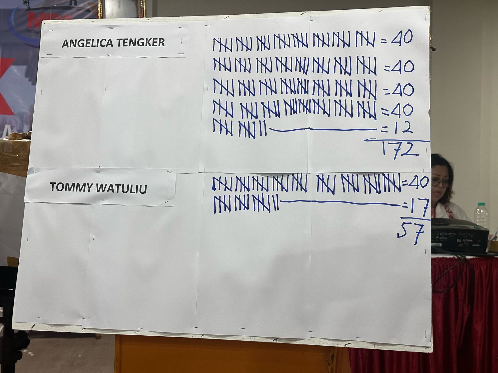 Suara keduanya saling membuntuti. Namun, putri tokoh tinju Sulut Benny Tengker unggul telak dengan meraih 172 suara, jauh di atas Watuliu yang meraih 57 suara.